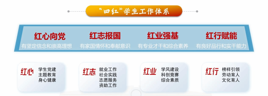 全面落实“立德树人”根本任务,将“红土”元素与思政教育有机结合,形成以坚定理想信念、厚植家国情怀为根基,践行“竢实扬华,自强不息”交大精神为重点,弘扬脚踏实地、交通报国的土木传统为核心的“红土”文化育人体系,着力培养“红心向党”、“红志报国”、“红业强基”、“红行赋能”的“四红”土木青年,即:具有坚定信念和崇高理想的“红心”土木人;具有家国情怀和奉献意识的“红志”土木人;具备专业才干和综合素养的“红业”土木人;具备良好品行和奋斗精神的“红行”土木人。