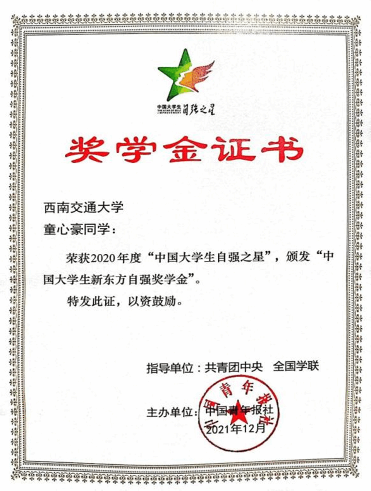 学院坚定不移用习近平新时代中国特色社会主义思想铸魂育人,获批教育部供需对接就业育人项目3项;学院官微入选“全国首批200个高校思政类公众号”重点建设名单;荣获2021年四川省关心下一代先进集体;学院团委荣获2021年四川省五四红旗团委、2021年成都市暑期“三下乡”优秀组织奖,获批“四川省高校名团干工作室”、土木2016级18班团支部荣获2020年“四川省五四红旗团支部”。