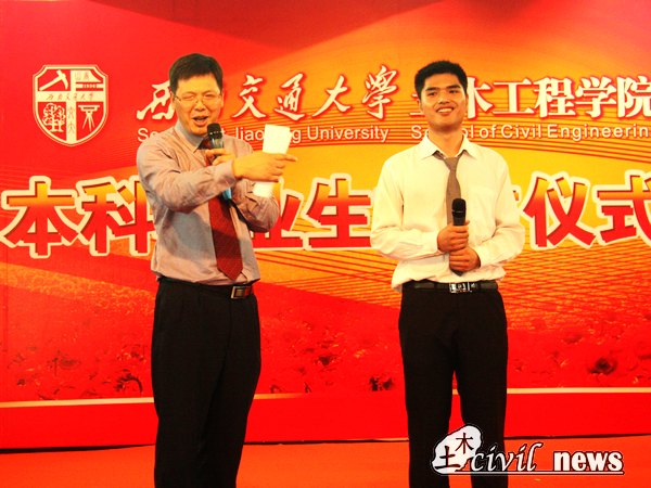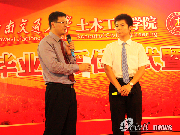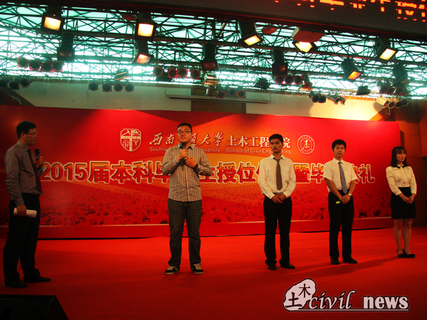 6月25日下午2:00二食堂三楼,土木学院毕业典礼如期举行。在优秀学生干部表彰结束后,3点40分,在主持人李锦红书记的“总想做一点特别的东西”的感叹中,典礼进入到四个大学纪念部分之一的“土木记忆”。