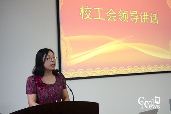随后,土木学院党委副书记李锦红讲话。他指出,学院正处于一个高速发展的时期,希望在学院广大工会干部和教职工的团结努力下,工会工作实现在高起点上的新突破,在未来的学院各项事业中创造辉煌的业绩。