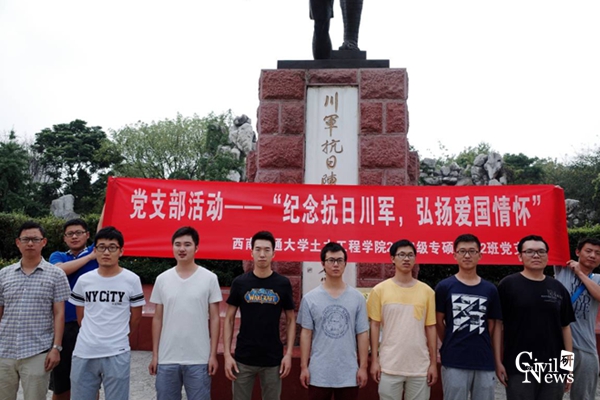 2014级专硕隧道2班党支部于成都市人民公园举行了“纪念抗日川军,弘扬爱国情怀”特色党支部活动。