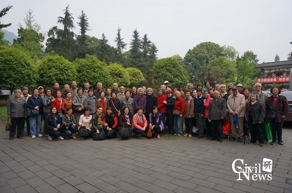 于4月10日组织了一次全院退休教职工青城山踏青的活动。