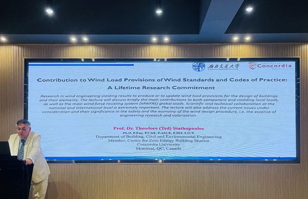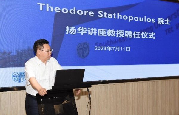 的发展历史与国际影响力,并指出Theodore Stathopoulos院士的加入将成为推动学校各项事业蓬勃发展的动力。