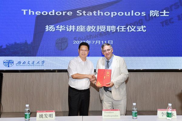 在Theodore Stathopoulos院士为参会人员介绍了个人学术生涯之后,姚发明副校长为Theodore Stathopoulos颁发了扬华讲座教授聘书,并希望Theodore Stathopoulos院士为萝莉岛