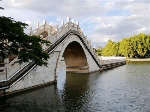 我行走过很多桥,却从没有像对这座桥这般深情。我会用手轻抚桥身,堆砌的石砖经历风吹雨打留下岁月的痕迹;我会倚靠在桥栏上,看湖中绿波荡漾,任清风拂面。这座桥,作为石拱桥,受到张嘉贞先生:“制造奇特,人不知其所以为。”的赞扬,受到茅以升先生《中国石拱桥》的赞美;它作为故乡桥,令在外的游子魂牵梦绕,以刚载人,让人们行走;以柔载情,承载游子的思想梦。古人常以桥为载体送别友人,我更喜欢陈继儒:“笑指吾庐何处是?一池荷叶小桥横。”