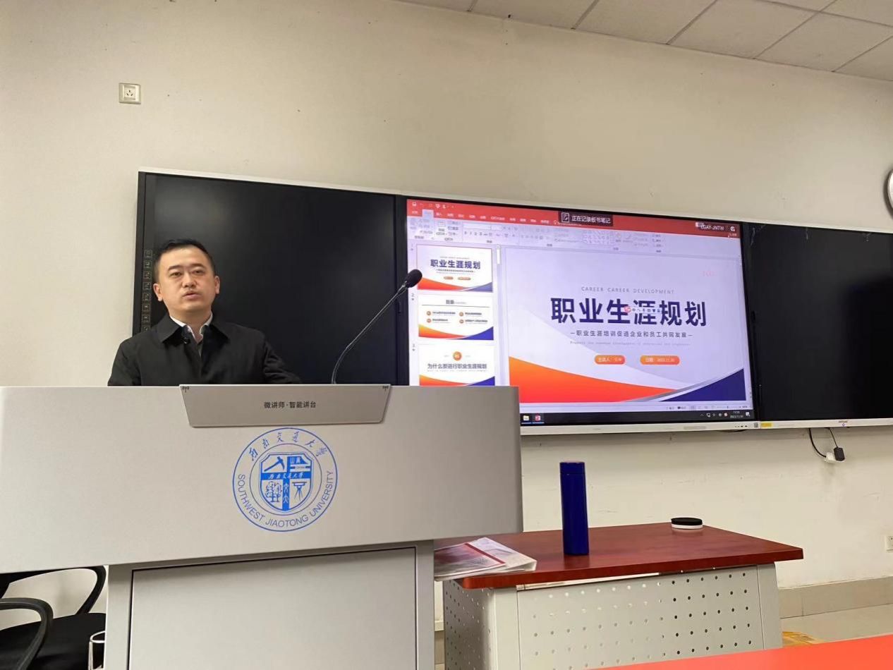 11月30日下午,来自中交四航局的学院青年讲师团成员吴坤经理和刘书停部长在X4131为土木2023-14班的同学们带来了一场精彩的生涯规划指导活动。两位导师的精彩分享为同学们揭开了职业发展的新篇章,为他们提供了更全面的行业认知和职业规划的参考,共同铺就了一条通向成功的道路。这次活动不仅深化了同学们对中交四航局的了解,同时也更好地让同学们了解自己的未来职业道路,为同学们的职业决策提供了富有价值的参考。