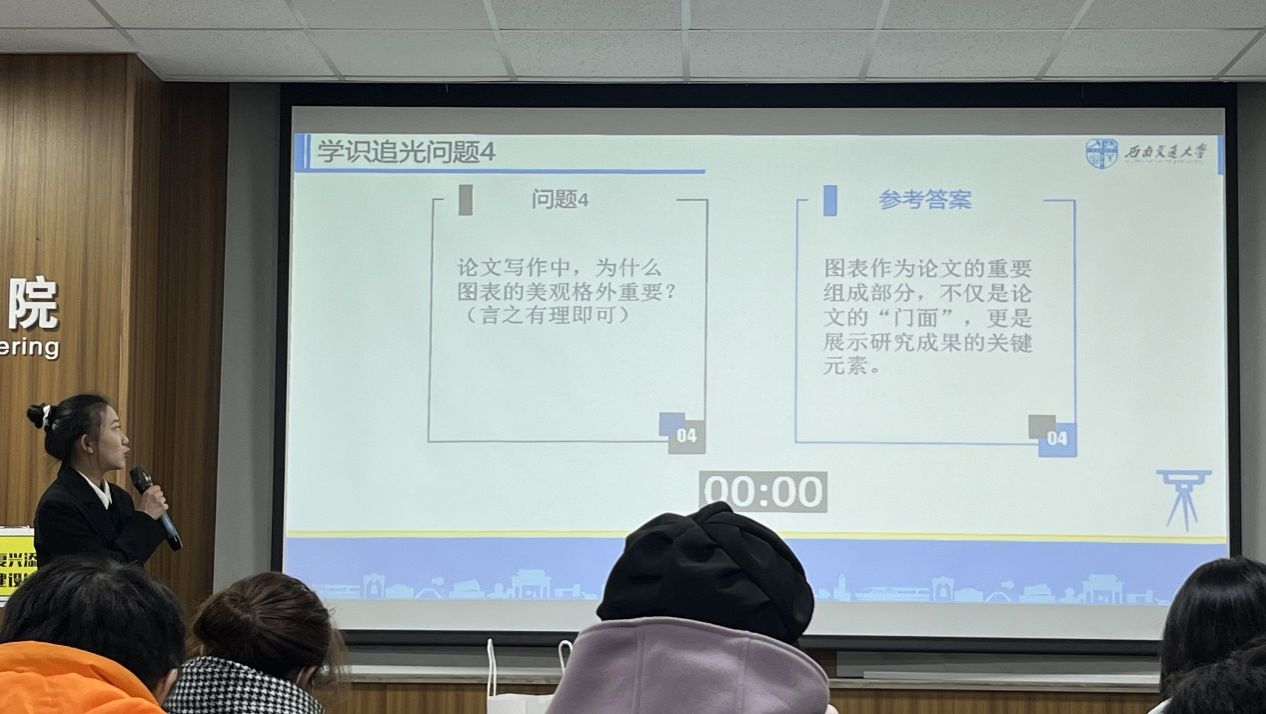 在Q&A之后是学识追光环节,同学们积极热情地举手回答PPT上的问题。经过郭老师的分享,同学们在论文写作时数据图重要性、投递期刊时所考虑的因素等方面都有了更深刻的了解,皆能回答正确,巩固学识。