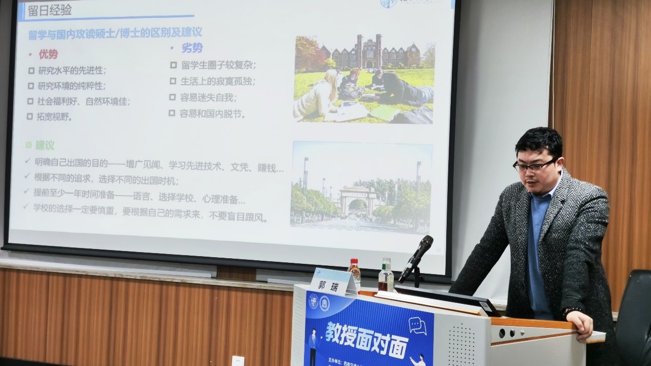 本次讲座旨在营造良好的学术氛围,助力广大在读研究生近距离与教师交流畅言,郭老师主要从论文撰写及投稿经验和留日经验分享两个方面展开叙述。