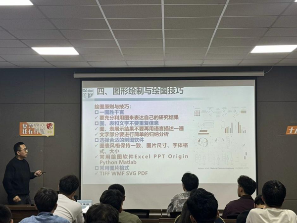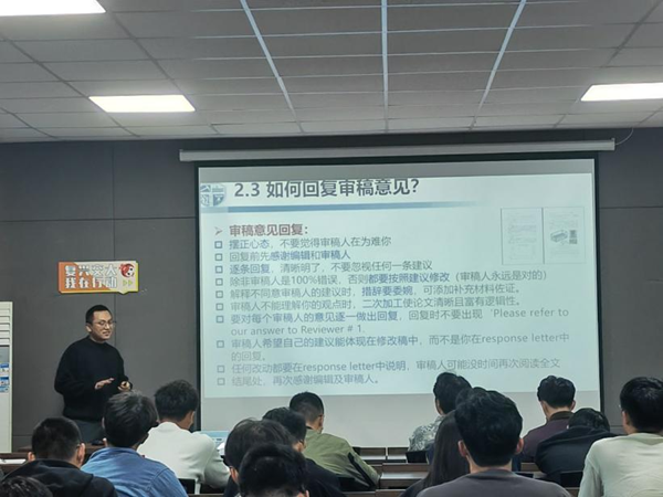 本次讲座以论文写作、期刊投稿、审稿意见作为重点切入口,辅以绘图技巧等补充,从王师兄自身的科研经历角度出发,为同学们开展了一场细致的经验分享交流。