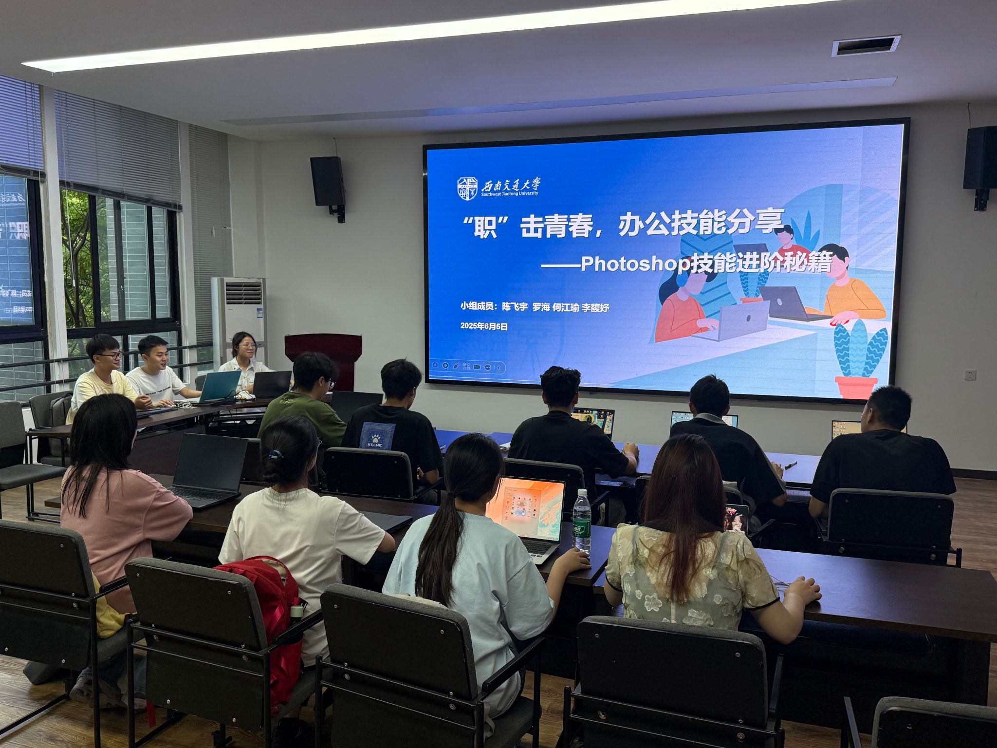 “红志”学生骨干培训班(第五期),开展了“职击青春”办公技能分享会系列活动,以四人小组为单位,围绕 Word、Excel、PPT、PS、PR 等办公软件展开学习与交流。团建中心指导老师贾文怡及 “红志” 班全体成员参与分享交流活动。