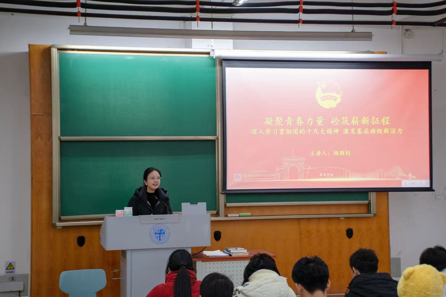 11月27日下午16:40,在X4357教室进行了“团的十九大精神学习团课”。杨颖钊老师以“凝聚青春力量,砼筑崭新征程”为主题,从两个方面开展讲解。首先,杨老师阐释了“团的十九大”的内容和意义,并着重强调了作为新时代团学干部,应当深刻领会团的十九大精神,将个人成长与国家发展紧密结合。而后,杨颖钊老师通过分析期中考情,对班团干部的责任义务、做法目标作出明确指导,为班级学风的建设打下坚实基础,助力培养新时代的优秀学生干部。