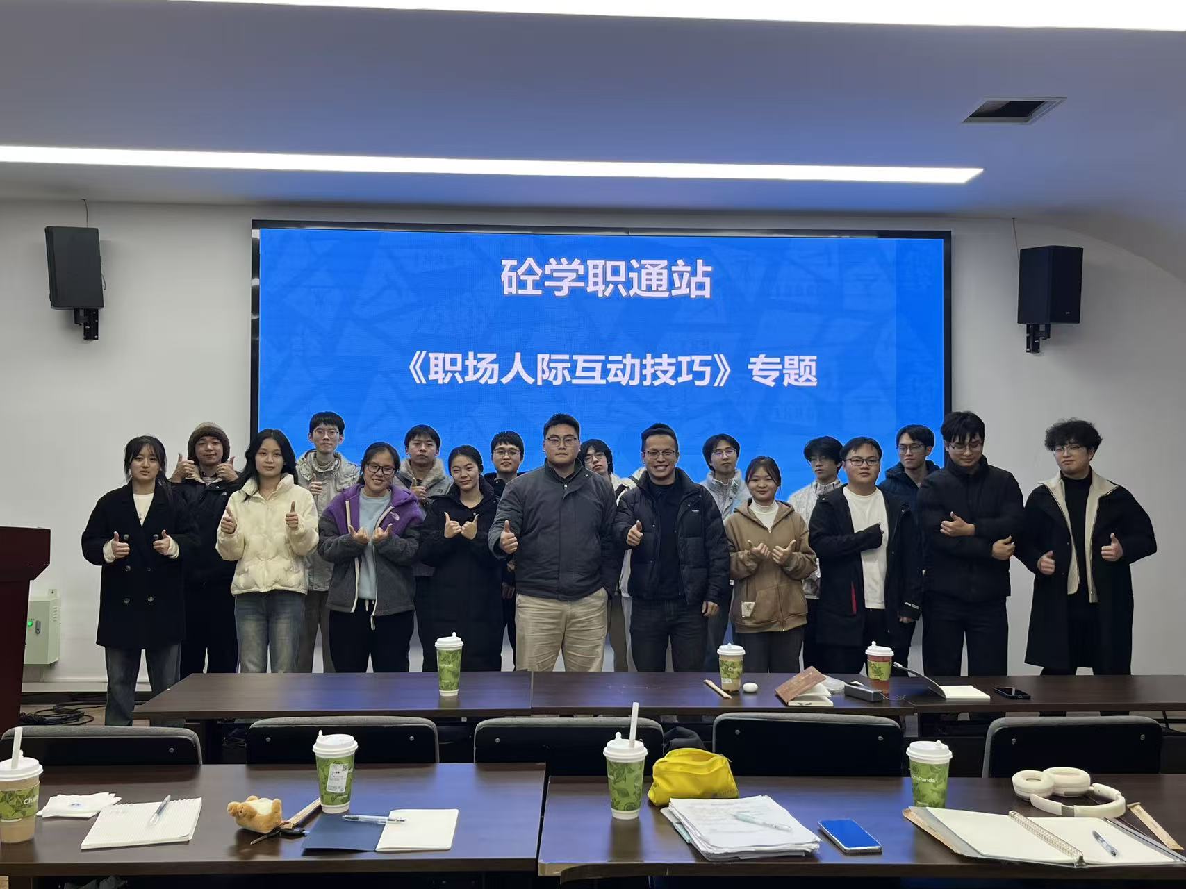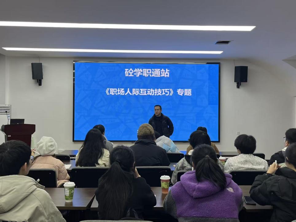 于2025年12月7日组织开展了“职场人际互动技巧”团体辅导专题活动。本次活动由学院辅导员彭政涛老师主持,谭力豪老师主讲,本科四个年级学生均积极参与。