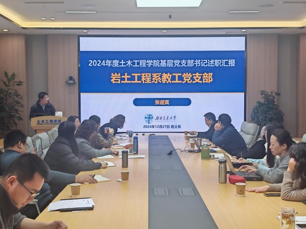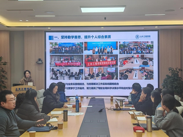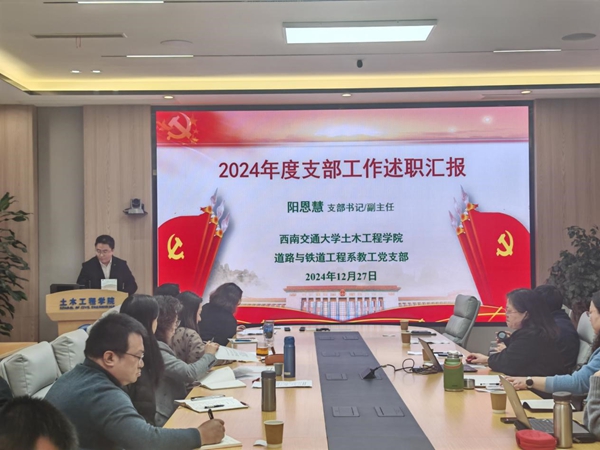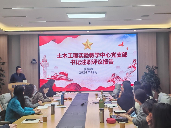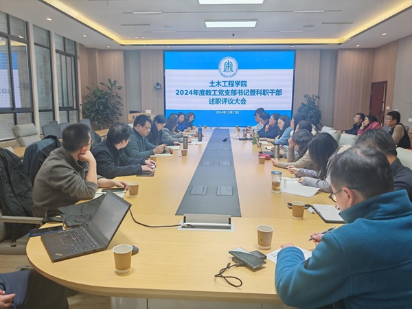 会议第一项,进行教工党支部书记述职。经支部书记抽签决定述职顺序。按照顺序,结构中心党支部、机关党支部、陆研中心党支部、实验教学中心党支部、图学及BIM研究所党支部、岩土工程系教工党支部、道路与铁道工程系教工党支部、建筑工程系教工党支部、桥梁工程系教工党支部、基础课党支部、地下工程系教工党支部的支部书记进行了述职。