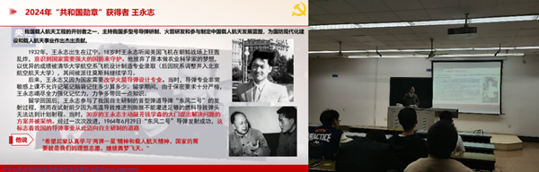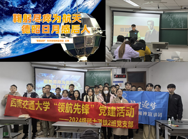 2024年11月28日,支部以“实践的力量:科学家精神与民族梦想”为主题,邀请“繁星逐梦”科学家精神宣讲团的王博同学进行《鞠躬尽瘁为航天,德昭日月感后人》的主题宣讲,分享科学家姚桐斌的事迹和精神,以及这些精神如何激励我们为实现民族梦想而努力。姚桐斌同志的事迹激励我们以实际行动践行社会主义核心价值观,为实现中华民族伟大复兴的中国梦贡献智慧和力量。