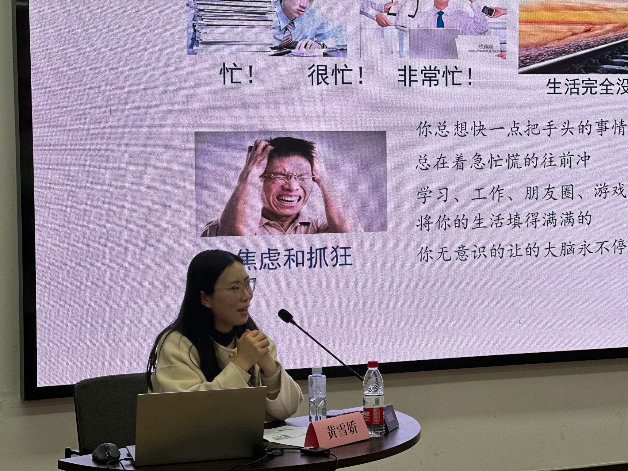 “红志”学生骨干培训班邀请黄雪娇老师,在X4407教室开展“有效的时间管理”专题讲座,旨在引导学生树立正确的时间观念,合理安排学习、工作和生活,促进个人成长与发展。