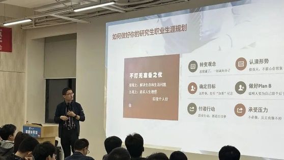 党委学生工作部副部长李毅分享如何科学地做好研究生生涯和职业生涯规划,明确学习目标及就业方向。李部长围绕导学相处、学术科研时间安排、研究生期间正确的应对心态、可能面临的误区、给研究生们的建议五个方面进行了讲解,并解答了在场观众的困惑。讲座结束后,参与同学表示受益匪浅,对开启研究生阶段学习和职业探索提供了有益的启发。