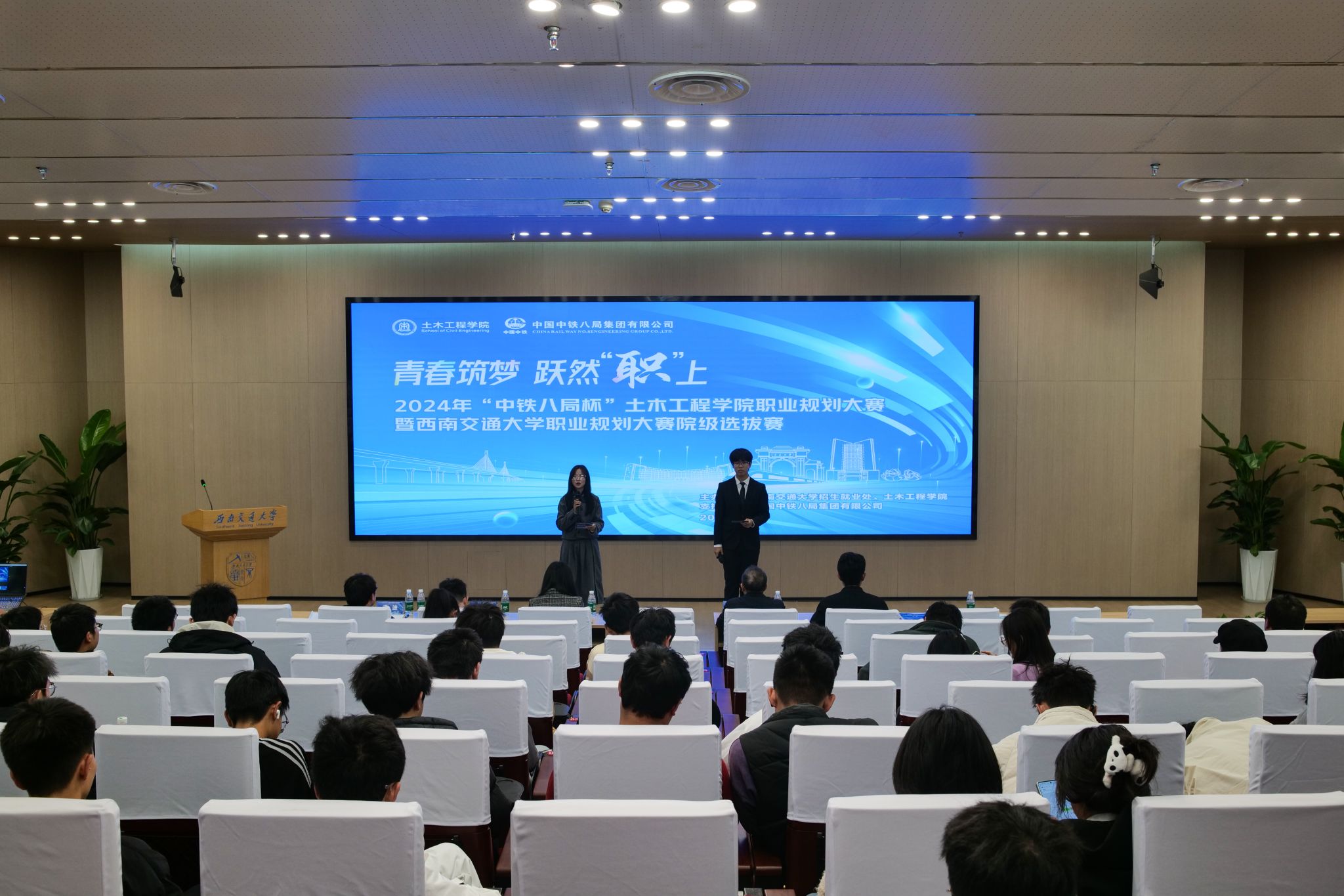 犀浦校区图书馆二号报告厅顺利举行。本次大赛作为学校职业规划大赛院内选拔赛,旨在引导大学生树立正确的成才观、就业观和择业观,科学合理规划学业与职业发展,提升就业竞争力。中铁八局城市轨道交通分公司副总经理李彪、萝莉岛