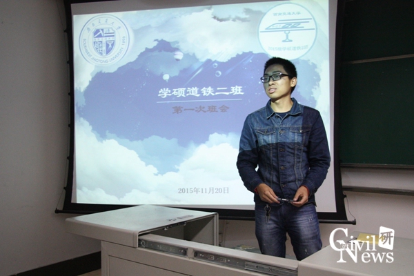 11月20日晚七点半,2015级学硕道铁2班于逸夫馆4304A召开本学期第一次主题班会暨党支部特色活动。本次会议由班长李孝攀同学主持,学硕道铁2班同学参加了本次会议。本次会议主要内容为创建“班级成员你追我赶创佳绩”的班级风气,同时举办本学期党支部特色活动。