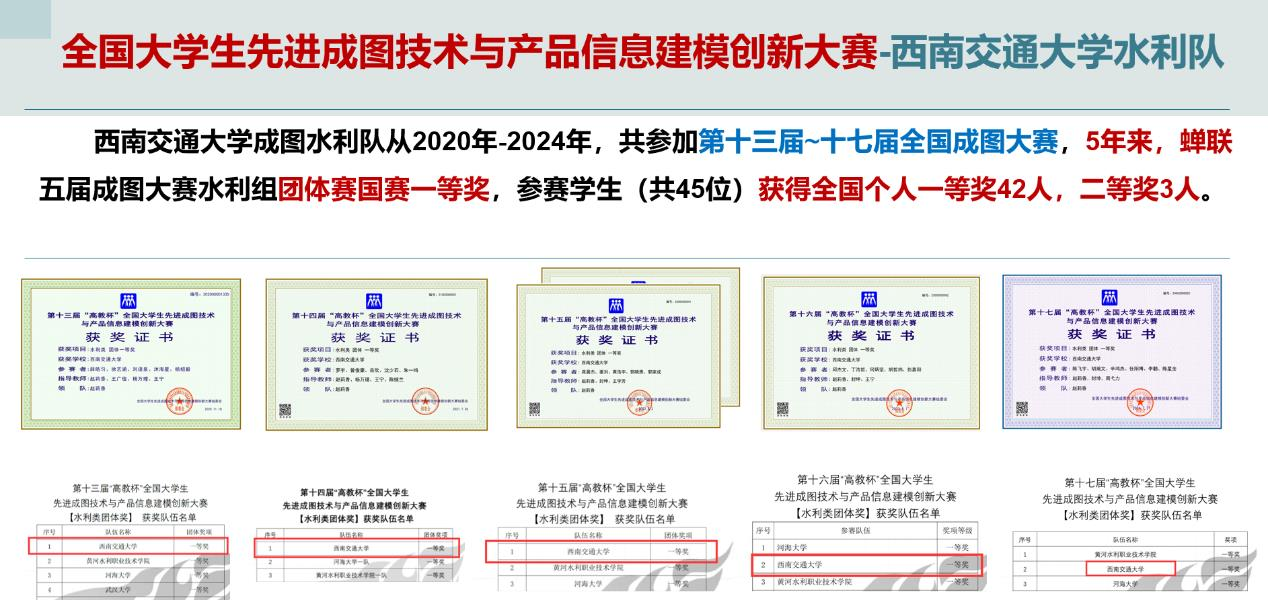 水利队连续参加了第十三至十七届先进成图大赛,成绩如下: