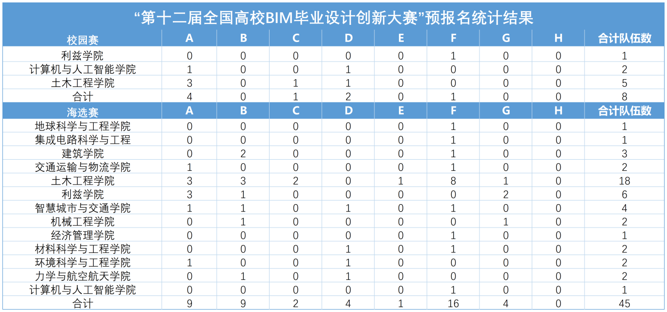 “第十二届全国高校BIM毕业设计创新大赛”预报名和统计工作已于2025年9月17日开展,并于2025年10月10日正式结束。BIM建模协会依照各参赛学院统计了晋级赛的相关情况。统计结果如下: