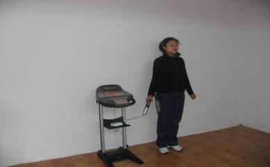 测试时,受试者自然站立,闭眼,当听到"开始"口令后,抬起任意一只脚,同时测试员开表计时。当受试者支撑脚移动或抬起脚着地时,测试员停表。测试两次,取最好成绩,记录以秒为单位,保留小数点后一位。