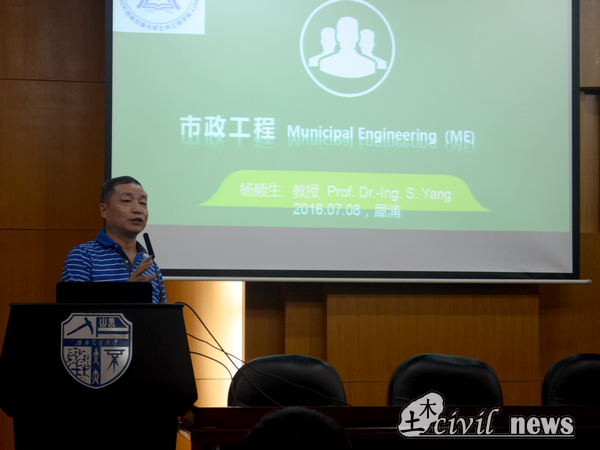 最后登台的是市政工程系的杨顺生教授。在杨教授看来,有城市的地方就有市政工程系,这是一门实用有价值的课程。他还从最近出现的武汉安徽等地的洪水入手,以贴近生活的实例让同学们了解这门课程的研究方向以及研究价值。