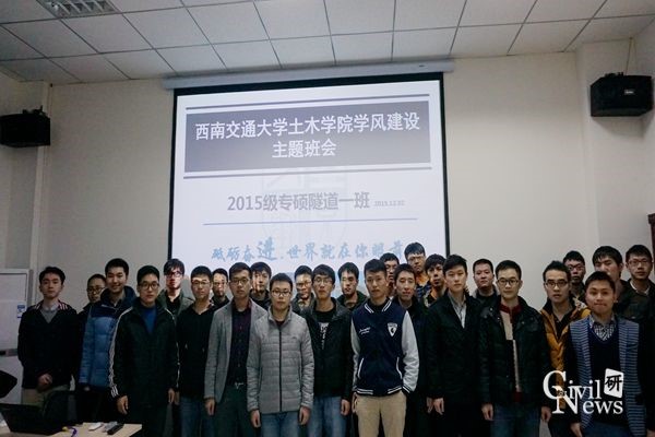 15级专硕隧道1班主题班会在隧道中心101学术厅如期举行。此次班会响应学院学风建设的号召围绕着前期班级工作及取得的成果,学风建设的重要性和对大家的建议等几个方面展开,旨在促进同学间相互交流,加强班级学风建设。班长周平主持了会议,班委和同学们相互交流纷纷提出自己的想法和建议。