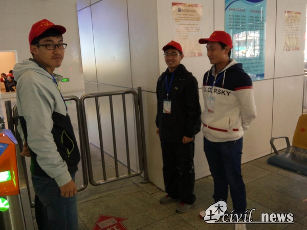 土木青协志愿者的及时而热心的帮助下,很快通过了检票。此外,在旅客检票时,出站口的部分检票机突然出现故障无法检票,使得部分旅客一时无法出站,土木青协的志愿者便迅速上前向旅客们询问相关情况,在明白问题所在后,就立即向保安汇报,在保安和志愿者们的共同帮助下,旅客们很快便从一个临时的出站口有序离开,高铁站站台的秩序也因此而得到恢复。