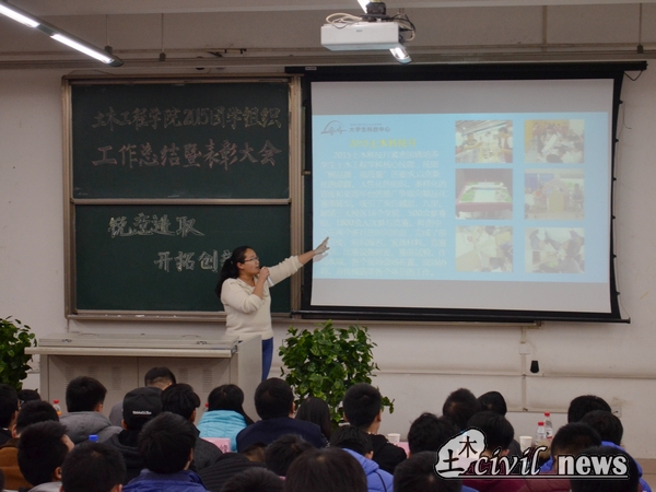 待所有组织汇报完毕,李锦红副书记发表了重要讲话。他肯定了各组织成员的辛勤付出,并代表学院党政对他们表示衷心的感谢。对于未来的展望,李锦红副书记以6个词语——“新常态”“责任”“忠诚”“正面”“真诚”与“爱”,表达了需要八大组织继续携手共进,紧密跟进学校创新转型,努力共建一流土木的决心。“莫等闲,白了少年头,空悲切!”李锦红副书记以一首《满江红》切入另一主题,要求土木学子做到格物致知,言行一致,诚意至心,弘扬正确的价值观,以成就未来的大格局。