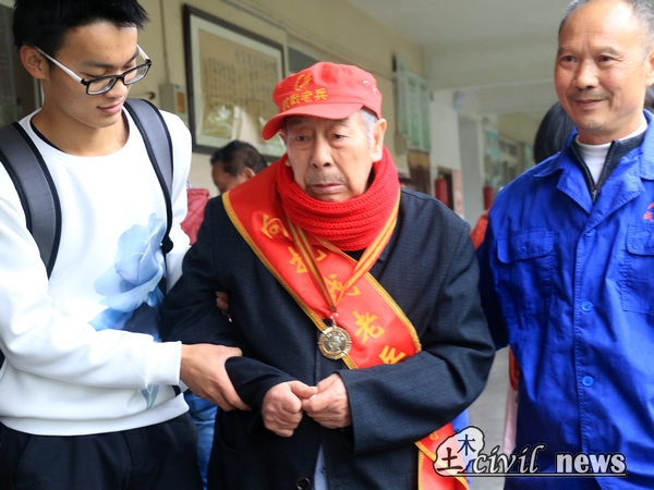 同学们一去,便与老兵们亲切交谈。聊到情深处,大家便紧握住了老爷爷们沧桑的手,感受着历史的气息。同学们的眼睛里都闪烁着感动的泪花。