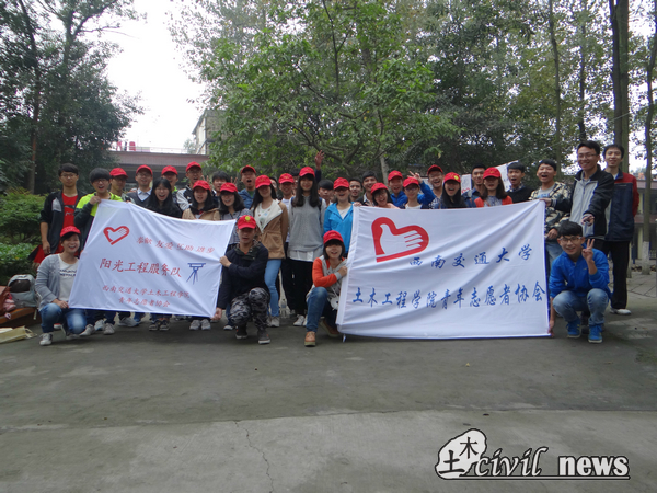 在老年公寓门口,志愿者们偶遇西华大学的20余位志愿者,通过交流协商,两校青协决定协同合作开展活动。志愿者们在明确职责分工、了解了注意事项之后进入了老年公寓。