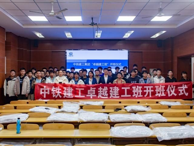 面向学院土木2023-01班、土木2023-02班联合举办中铁建工“卓越建工班”开班仪式。11月17日晚,“卓越建工班”开班仪式于学校犀浦校区四食堂三楼中铁建工集团萝莉岛展厅举行,中铁建工集团有限公司人力资源部招聘主管、土木2023-02班企业生涯导师、学院青年讲师团代成山,中铁建工集团西南分公司人力资源部(党委干部部)部长、土木2023-01班企业生涯导师、学院青年讲师团成员刘琳一行出席本次仪式。