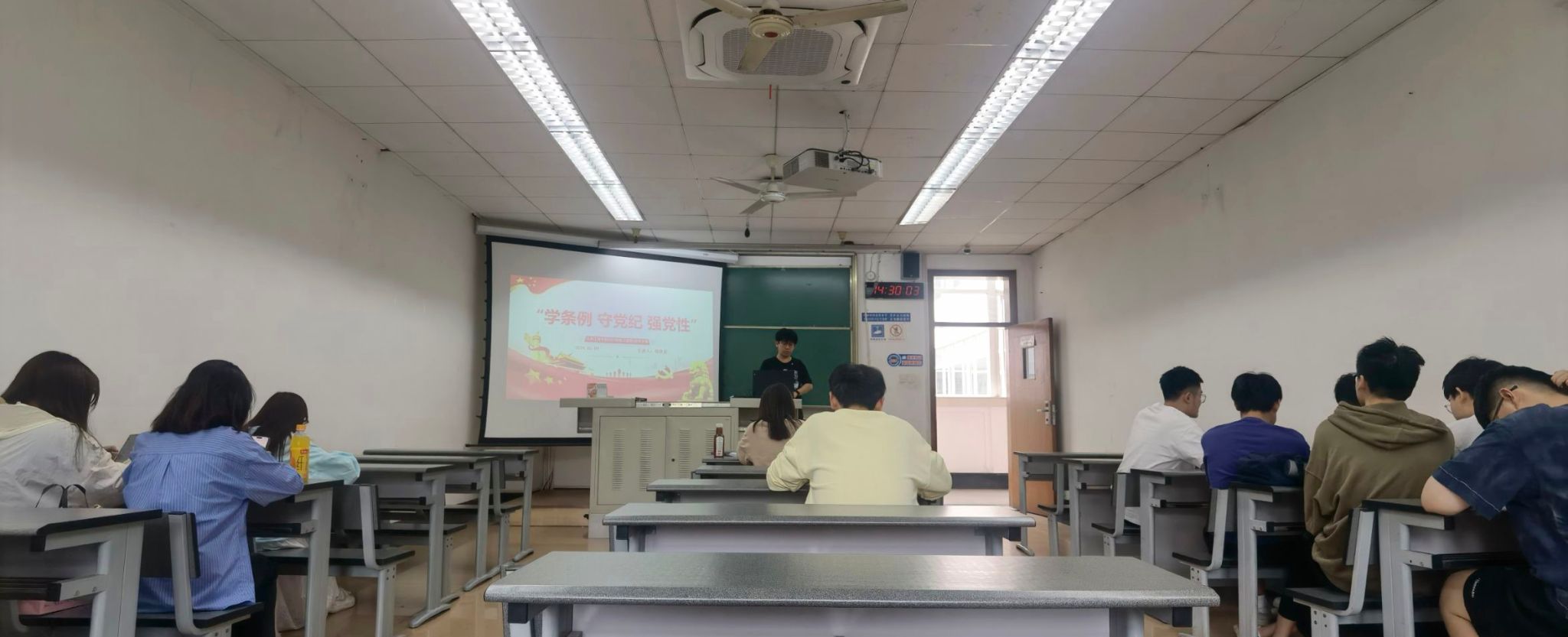 九里校区4304A开展党员大会,会议围绕“深入学习习近平总书记关于党的纪律建设的重要论述,原原本本、逐章逐条学习《中国共产党纪律处分条例》”相关内容开展。此次党日活动由支部宣传委员张世龙主持召开,共有10名党员和9名入党积极分子参加。
