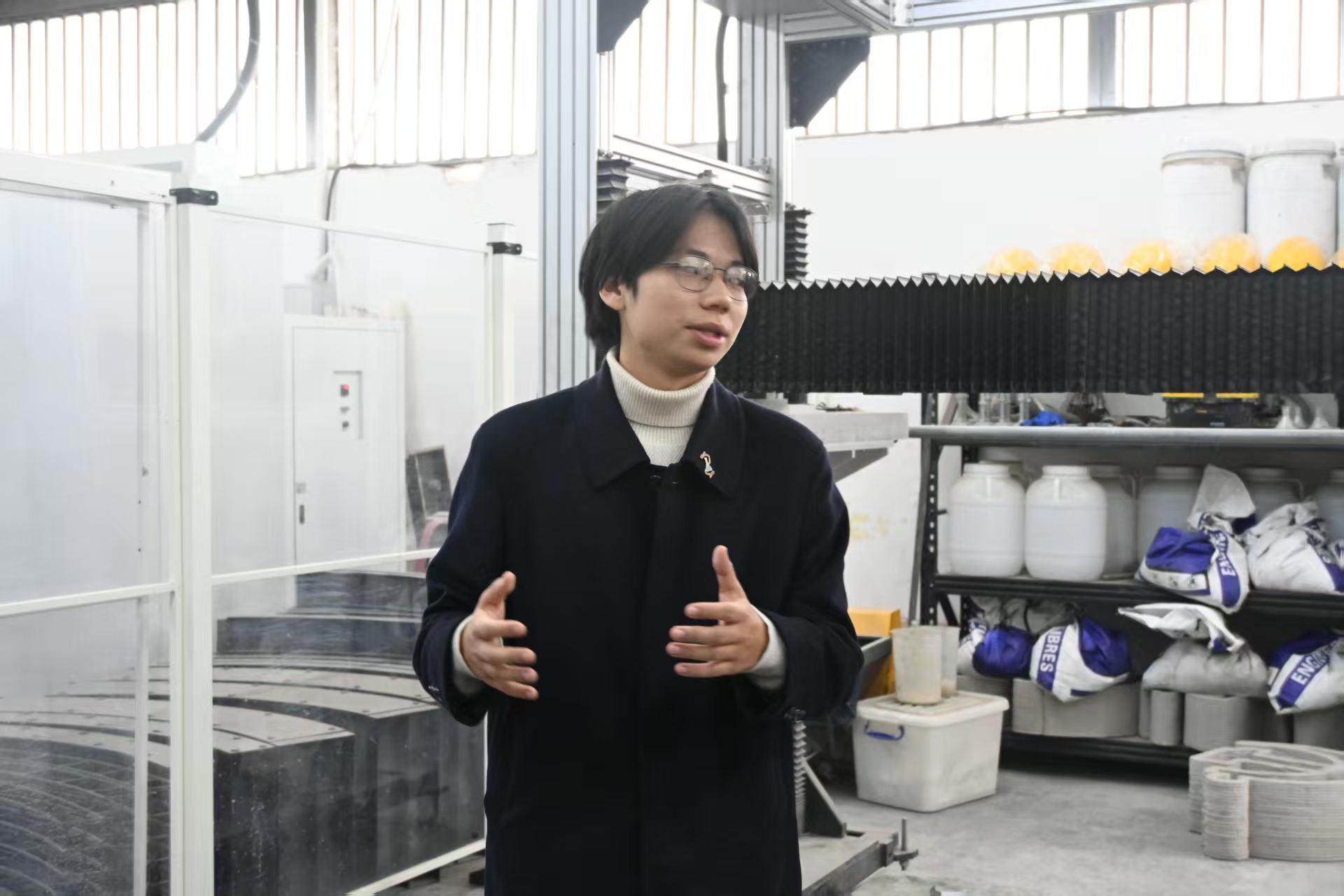 安全教育结束后,同学们在老师的引导下走进3D打印混凝土作业区,近距离接触土木工程领域的数智化前沿技术。现场,专业教师从材料适配、设备原理、打印工艺等核心维度,系统讲解了3D打印混凝土技术的研发背景、技术优势及应用前景,重点介绍了该技术在复杂异形构件制作、绿色低碳建筑施工等实际工程场景中的创新应用。