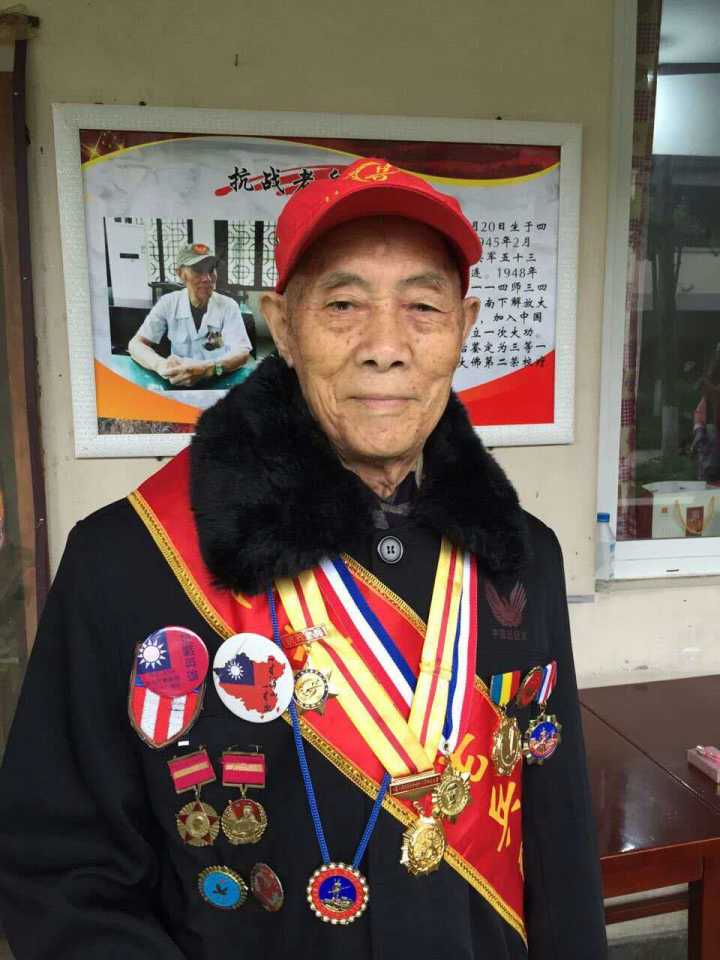 苗存惠老英雄,今年已97岁高龄。他是川军出身,于1935年考入陕西黄埔军校分校,曾参加“枣宜会战”,并以少校军衔参加“青年远征军”。老人年纪虽大,但他精神矍铄,讲话还不时幽默地说说笑话,逗得旁边的同学发出阵阵笑声。