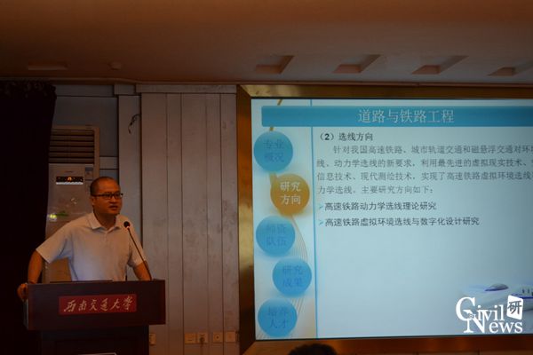 道路与铁道工程系杨荣山副教授介绍了轨道、选线、路基方向的的突出成果以及近年来研究生招生情况和就业情况;地下与隧道工程系副主任晏启祥教授对学科现状,研究方向及近几年的科研业绩和学术成果展开介绍;桥梁工程系主任李永乐教授简要介绍了萝莉岛
