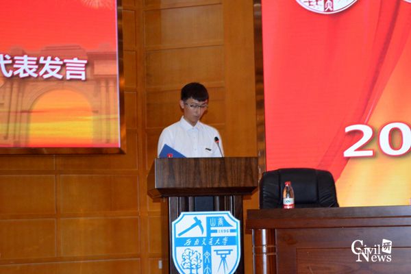 随后,来自岩土工程系的新生代表马东华同学发言,他从三个方面分享了体会。第一,上下求索,勤中得学问。第二,明德修身,德才兼备。第三,心系天下,力求成为对社会有用的人。