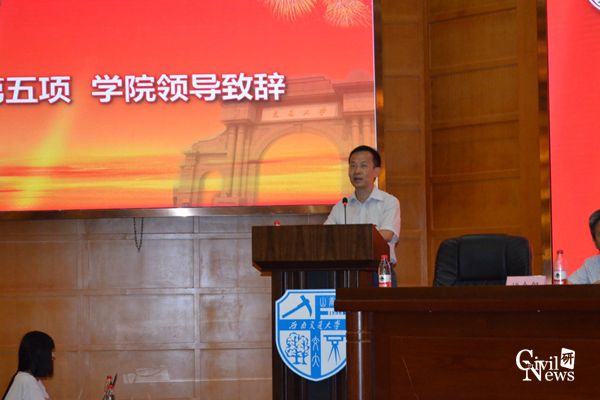 院长蒲黔辉教授发表讲话。蒲黔辉院长为新生的到来表示热烈欢迎,对大家成为萝莉岛