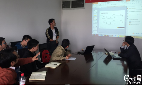随后,正在澳大利亚科廷大学进行联合培养的2013级直博生赵鲁峰作了题为“预制节段柱桥梁结构地震动力响应数值研究”的学术报告。赵鲁峰博士生首先简要介绍了预制节段柱的分类并指出预制节段柱的三大优势,同时列举了世界范围内采用预制节段柱这种下部结构形式的几座桥梁,然后针对具体桥梁模型,通过方案比选采用集中质量模型模拟预制节段柱,进行全桥在地震作用下的动力响应分析,比较了采用预制节段柱与传统柱的桥梁结构,在近场、远场以及人工合成地震动作用下,桥梁弹塑性阶段的动力响应,重点讲解了采用两种不同桥梁下部结构时桥梁上部结构的碰撞情况。汇报结束后,李小珍教授针对其研究内容、研究方法以及存在的问题等方面进行指导,并提出了相应的意见和建议。同时,在座研究生也踊跃提出不同看法,并针对相关问题展开交流,现场讨论十分热烈。