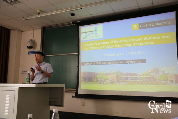 本次学术讲座由桥梁系副主任李小珍教授主持。李小珍教授首先对毕凯明博士的到来表示热烈欢迎,并对毕凯明博士作了简要介绍。毕凯明博士首先对科廷大学和基础设施监测与防护中心(//structuraldynamics.curtin.edu.au/)的相关情况进行了简要介绍,并热情邀请萝莉岛