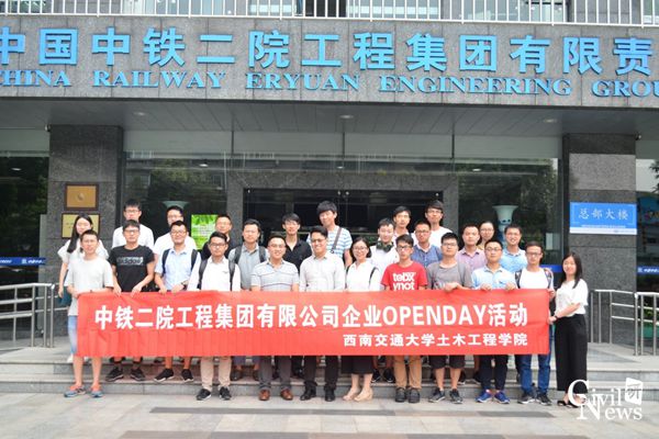组织部分研一同学前往中铁二院工程集团有限公司参观学习,20余名朝气蓬勃的土木研一同学在黄雪娇老师和王磊老师带领下前往中铁二院。
