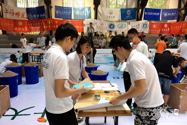 大赛组委会为参赛队员提供75cm*50cm*50cm的模型砂箱,队员通过白卡纸和牛皮纸在规定时间内完成加筋土挡墙模型制作。比赛过程中,美国CPESC和意大利注册专业工程师、马克菲尔集团土工合成材料首席专家和亚太地区技术总监Pietro Rimoldi对于萝莉岛