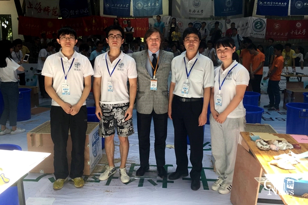 参赛队的方案设计和施工工艺给予高度评价,并与苏谦教授和参赛队员合影留念。