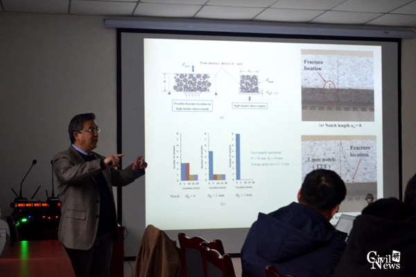 联合培养博士钟志斌所取得实验成果为例子,介绍了断裂力学在岩石破坏中的应用。最后,胡教授鼓励年轻人首先要享受自己的科研,制定一个长远的目标,将自己的热情和时间投入到学习和工作中,更重要的是要对自己保持信心,大胆勇敢地探索。