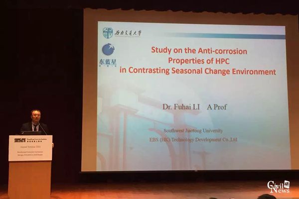 李福海高级工程师应邀作了题为《Study on the Anti-corrosion Properties of HPC in Contrasting Seasonal Change Environment》的学术报告,报告依托建筑材料教研室叶跃忠教授研究团队铁道部课题《京沪高速铁路腐蚀环境下混凝土结构抗侵蚀性技术措施及检测评定技术》,介绍了京沪高速铁路沿线桥梁下部结构在季节变化环境下抗侵蚀技术措施,为香港混凝土材料技术工作者、混凝土结构设计和施工技术人员、质量检测和监理人员提供了相关的技术信息和建议,得到了与会专家的肯定和好评。