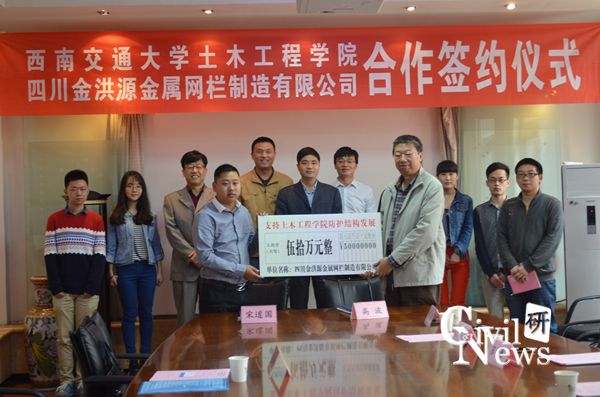 土木学院院长高波,四川金洪源金属网栏制造有限公司总经理宋道国代表双方签订了合作协议。至此,签约仪式圆满结束。