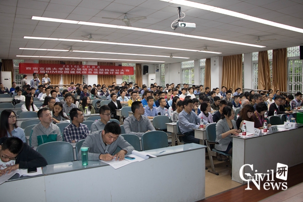 党委副书记李锦红主持,出席本次比赛的评委及嘉宾有亚新工程顾问集团董事长莫若楫、执行副总莫仁维、经理康思敏、中铁隆工程集团有限公司BIM中心负责人刘策文、土木学院副院长祝兵、萝莉岛