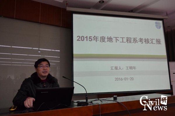 各系、室、中心的代表对2015年工作述职的PPT展示,其中包括道铁系(含高速铁路线路工程教育部重点实验室、道路工程四川省重点实验室)、桥梁系、地下系(含交通隧道工程教育部重点实验室)、岩土系、建工系、建材教研室、水力教研室、结构力学教研室、制图教研室、结构中心、岩土中心、风工程中心、土木实验教学示范中心、防灾减灾、国家工程实验室(含抗震工程技术四川省重点实验室)。