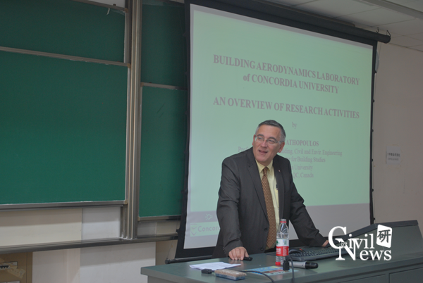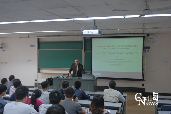 逸夫馆4417隆重举行。本次学术报告主讲人为Ted Stathopoulos教授。李明水教授、潘毅副教授和近百名研究生参加。