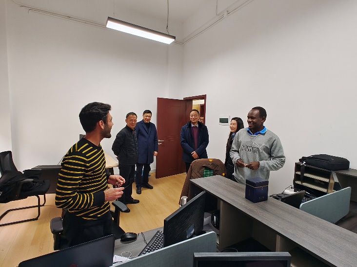 蒲黔辉院长、高平平书记、王明年副院长、周曦副书记、车小洁副书记等一行走访了学院教学、办公场所。蒲黔辉院长关心、了解了学院师生学习、科研情况,悉心听取了师生对教学、办公场所进一步满足现实需求的意见和建议,并提醒在场师生一定做好教学、办公场所防火防盗、预防漏电以及防范泄密等安全工作。